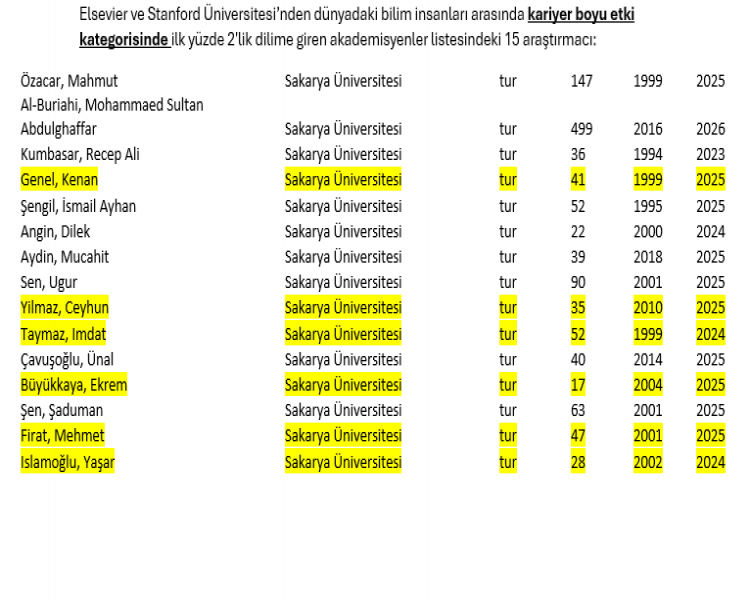 Dünya'nın en başarılı akademisyenleri listesinde %2'lik dilime giren öğretim üyelerimizi tebrik ederiz.