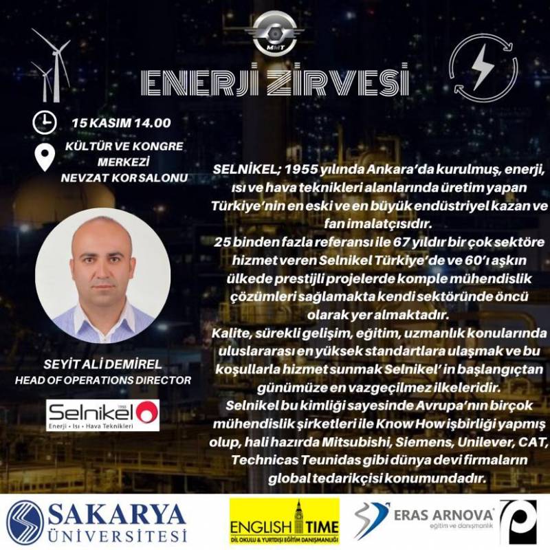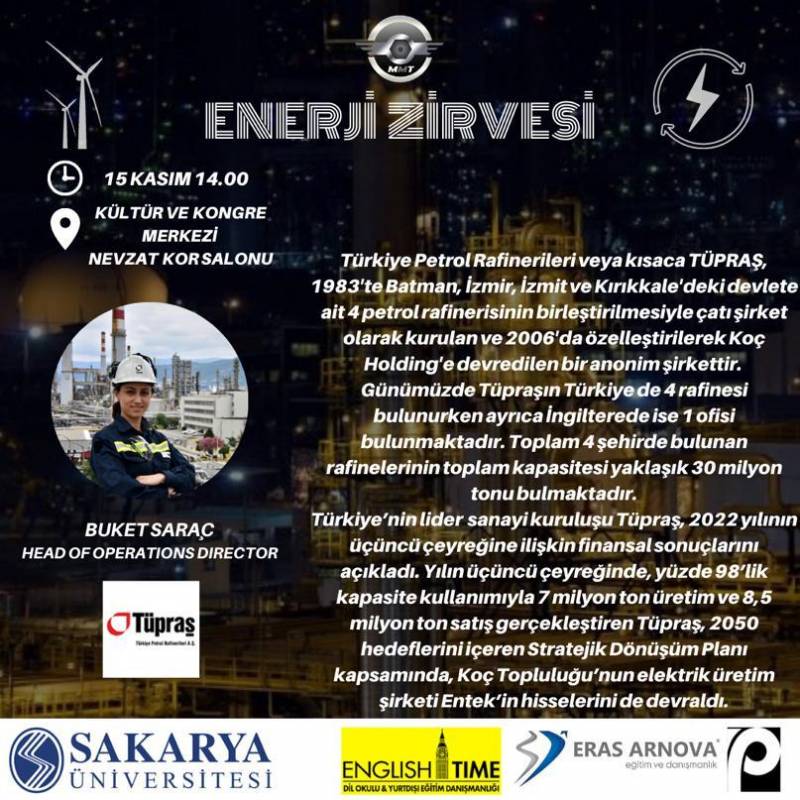 15/11/2022 tarihinde enerji zirvesi düzenlecektir. Etkinlik detayları eklerdedir.