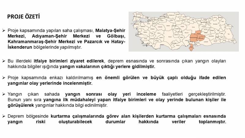 Mühendislik Fakültesi Makine Mühendisliği Bölümü Öğretim Üyesi Doç. Dr. Gökhan Coşkun yürütücülüğünde Prof. Dr. Hakan Serhad Soyhan, Dr. Öğr. Üyesi Üsame Demir, Hv.İs.Asb.Kd.Bçvş. Cemil Özkalay ve Hv.İs.Asb.Kd.Üçvş. Onur Mammacıoğlu'nun araştırmacı olduğu TÜBİTAK 1002-C Doğal Afetler Odaklı Saha Çalışması Destek Programı kapsamında gerçekleştirilen “Deprem Afeti Esnasında ve Sonrasında Meydana Gelebilecek Yangın Risklerinin ve Olaylarının Tespiti ve İrdelenmesi” Projesi başarıyla tamamlanmıştır.