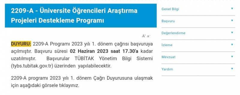 Tübitak 2209-A projelerinin başvurusu 2 Haziran 2023 saat 17:30'a kadar uzaltılmıştır.